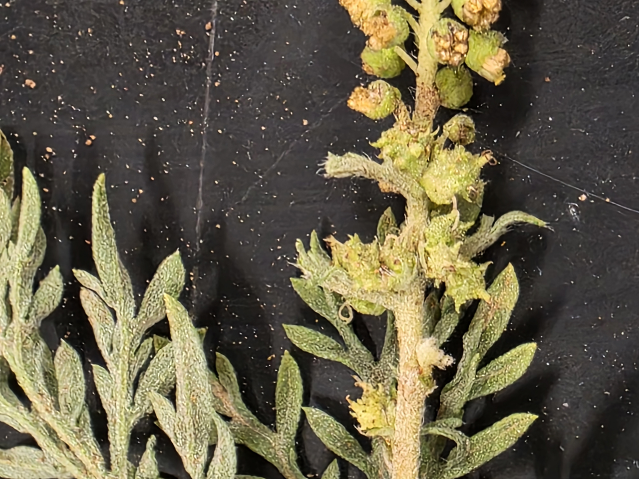 Ambrosia confertiflora, macro of carpellate, photo Russ Kleinman and the Silver City Flora Group (Bill Norris, Wendy Graves, Jim & Jane Spinti, Angela Flanders, Betsy Kaido, & Jon Titus), Silver City, WNMU campus, 10th and West, September 4, 2025
