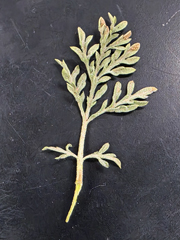 Ambrosia confertiflora, leaf, photo Russ Kleinman and the Silver City Flora Group (Bill Norris, Wendy Graves, Jim & Jane Spinti, Angela Flanders, Betsy Kaido, & Jon Titus), Silver City, WNMU campus, 10th and West, September 4, 2025