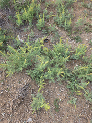 Ambrosia confertiflora is a perennial from a deep rhizomatous rootstock. The pubescent leaves are 2-3 times pinnately divided. The carpellate involucres have several curved spines. This plant is found in disturbed packed soil in Silver City.