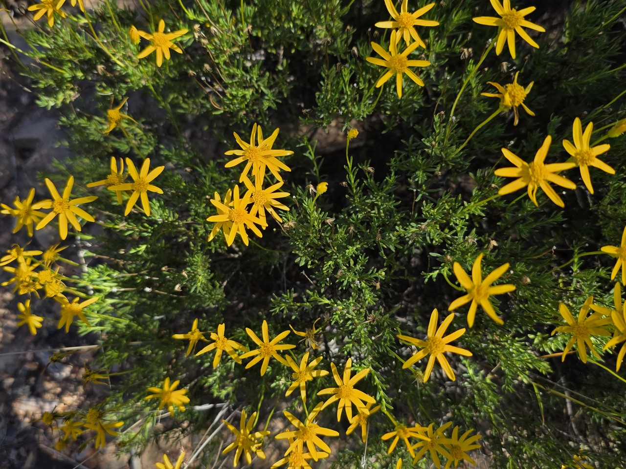 Chrysactinia mexicana, flowering stems, photo Russ Kleinman, Wendy Graves, Jane Spinti, Kathleen Koopman, Jonathan Titus, and Angela Flanders, Chloride Flats, October 29, 2025