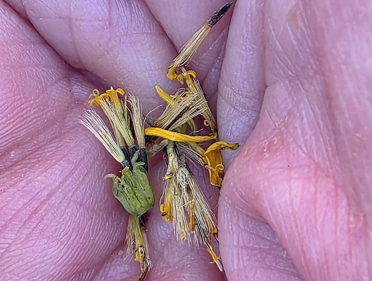 Chrysactinia mexicana, pappus, photo Russ Kleinman, Wendy Graves, Jane Spinti, Kathleen Koopman, Jonathan Titus, and Angela Flanders, Chloride Flats, October 29, 2025