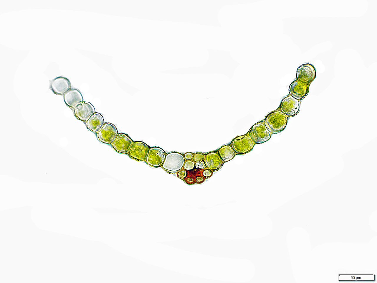 Funaria hygrometrica var. hygrometrica, photomicrograph of leaf cross section, photo Russ Kleinman & Karen Blisard, Trout Creek along Hwy 15, February 27, 2026