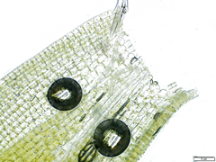 Pterygoneurum ovatum, photomicrograph leaf cross section, photo Kelly Allred, Cibola Cty., El Malpais National Monument,