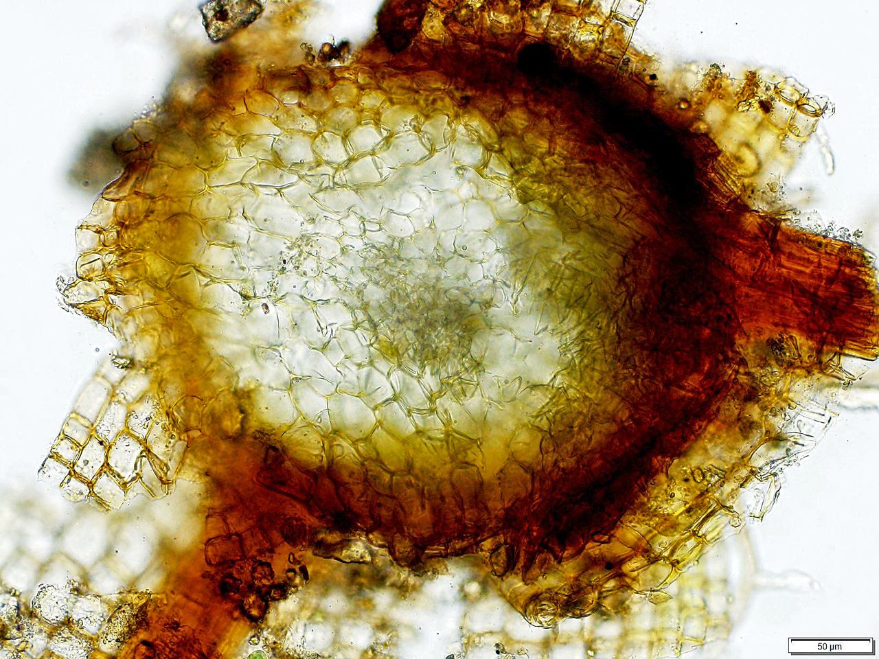 Syntrichia pagorum, cross section of stem with central strand, photo Russ Kleinman & Karen Blisard, Western New Mexico University, "Fern Hill", January 9, 2025
