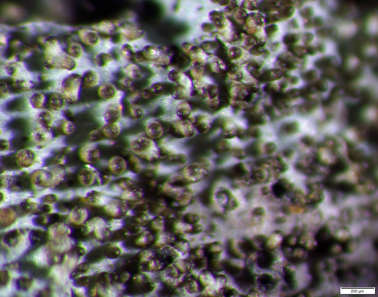 Xanthoparmelia nigroweberi, photomicrograph of young isidia, photo Russ Kleinman & Karen Blisard,