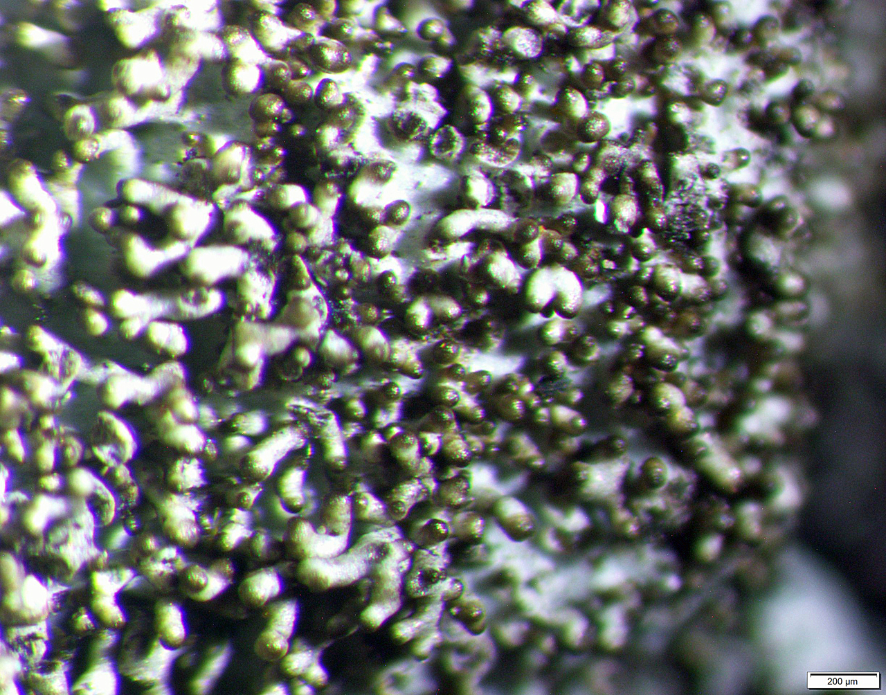 Xanthoparmelia nigroweberi, photomicrograph of older coralloid branching isidia, photo Russ Kleinman & Karen Blisard,